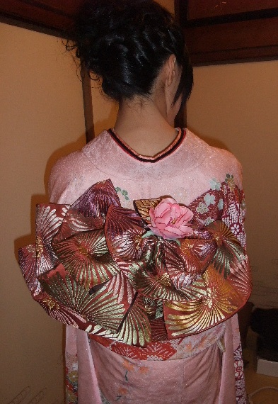 帯が凄いことになりました。スゲェ……。オフ友に見せびらかして終了の予定だったのですが、あまりにも凄いことになったのでwwwを使って自慢します。着付師の方ありがとう!最初「何度もやり直したり手伝ってもらったり、どんなことになってんの!?」とか思ってましたが鏡みてビックリ。ちなみに帯締めとかの小物も凄いことになってます。かなり凝ってます。特に何か頼んだり、渡したりした訳ではないのですが。